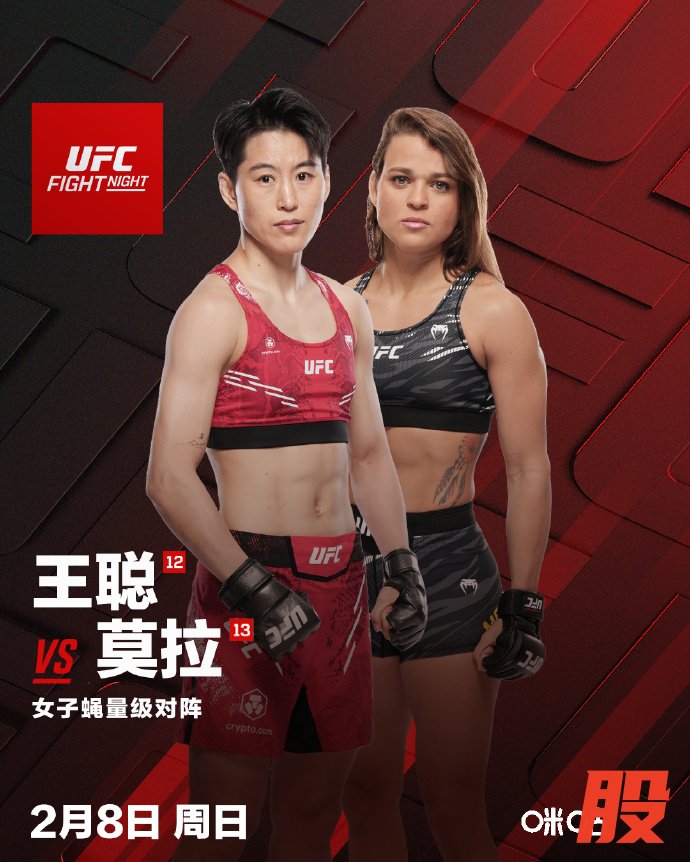 2 月 8 日,UFC(终极格斗冠军赛)113 格斗之夜,中国女子蝇量级综合格斗的优秀选手王聪,将对阵实力强劲的巴西选手埃杜阿尔达・莫拉。近期一直在美国展开特训的王聪透露:“最近状态特别好,一直针对对手的特点展开备战,希望有更多时间在这里学习、思考和吸收,不断提升自己的实力。”